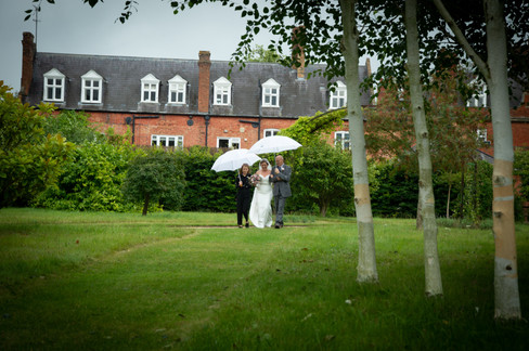 Acres of beautifully kept gardens, set upon lakes and bridges which surround the manor house, made some lovely drop backs for their outdoor wedding. Despite a few downpours of rain, the Registar's honoured Rachael and Mike's wishes to get married outside and as luck would have it, the sun shone as Rachael's Dad walked her down the isle, greeted by a wave of smiles from guest's peeking out of their umbrellas!